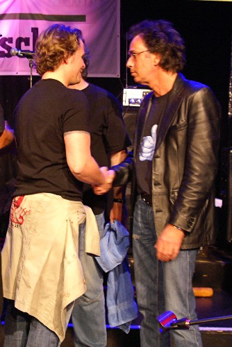 ja, der kultursommer heusenstamm... jou, war schön, vor allem: vielen dank der lieben frau hoffmann (der kuchen war weltklasse!)! vielen dank der crew von stage-light aus mühlheim, gerhard, flo und jens, die unmögliches möglich gemacht haben! vielen dank an arvid, der master of the knöppe! und vielen dank unseren unglaublich treuen fans, die zum teil echt von weither anreisen und die immer gute laune mitbringen. tja, und man lernt halt immer wieder mal leute kennen, die einfach wichtiger sind als andere, alle achtung! soviel nur dazu (siehe bild!)...