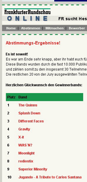 zunächst mal die vorrunde mit 106(!) bewerbern, geile bands aus ganz hessen! rechts im bild die publikumswertung: