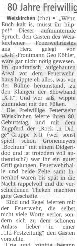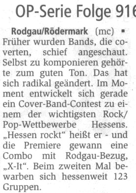 Stimmen tut allerdings schon, dass da am 14.07.2006 in Hofheim Hessens beste Cover-Band gespielt hat, die heißt nämlich “X-it” ;-)